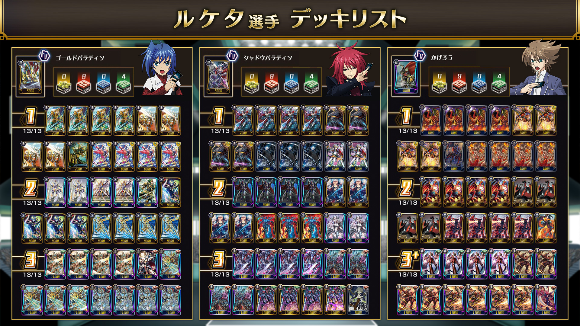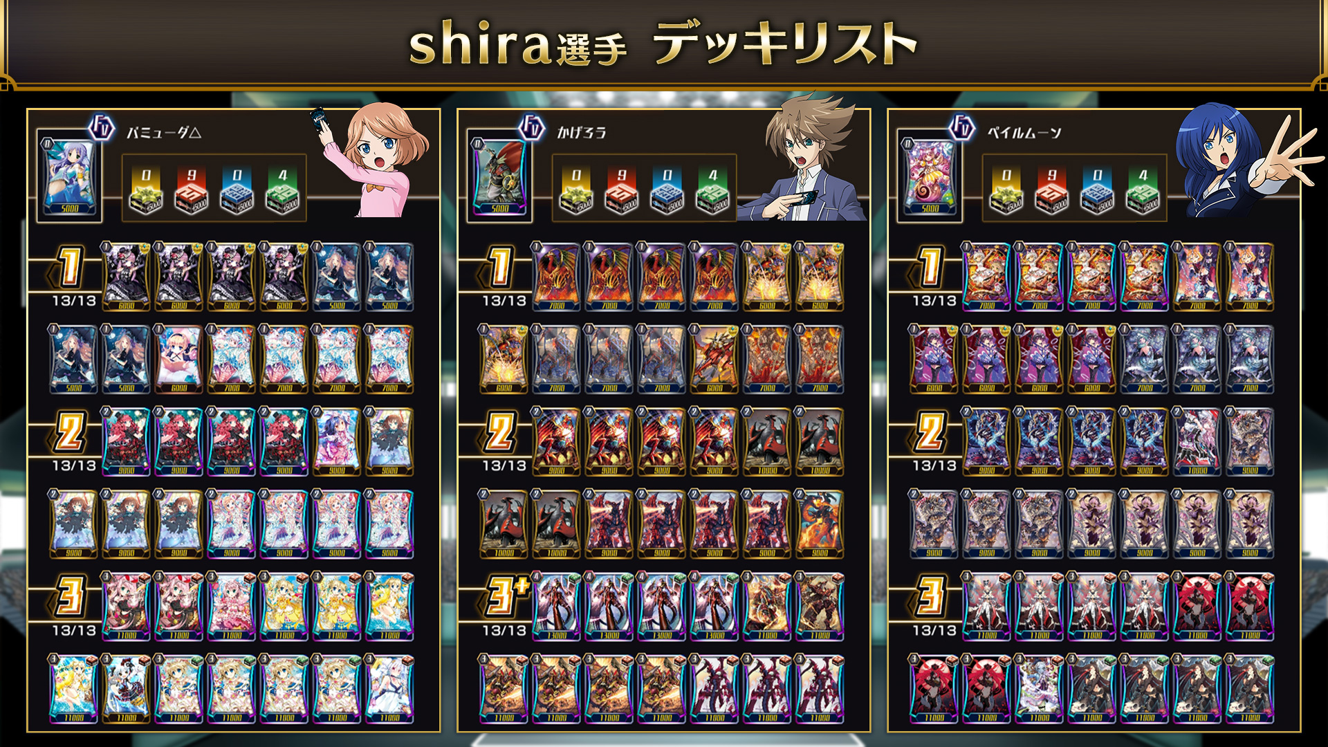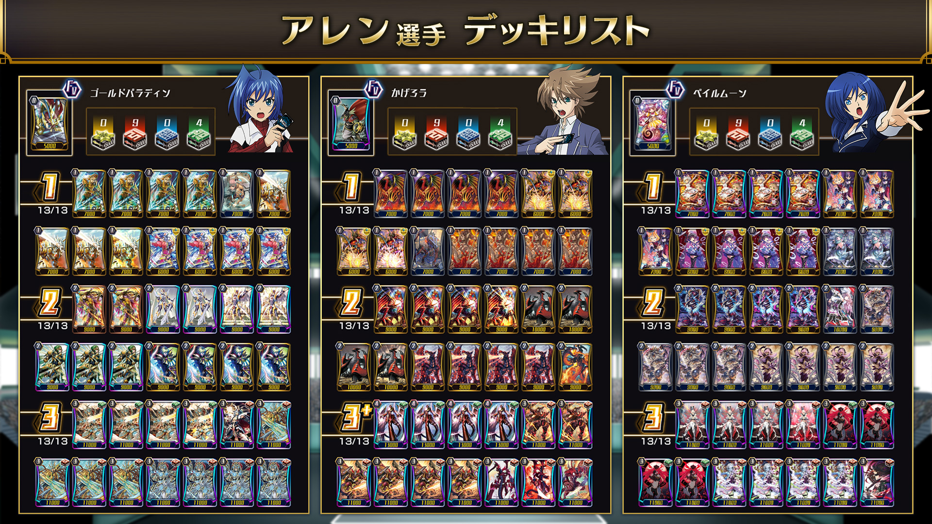 選手は事前に登録した3つのデッキを使用します。