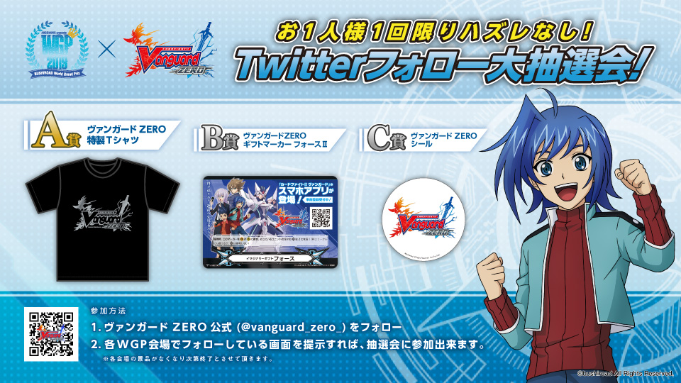 ヴァンガード ZEROでは、VG各会場にて「WGP2019×ヴァンガード ZERO Twitterフォロー大抽選会!」を開催!