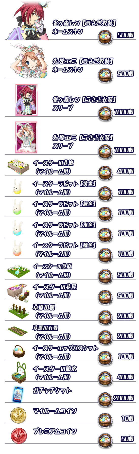 「イースターエッグバスケット」を集めて交換所で交換します。