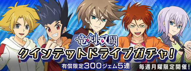 ※「クインテットドライブガチャ」は、ガチャ「竜剣双闘」と同じカード、同じ確率で排出されます。