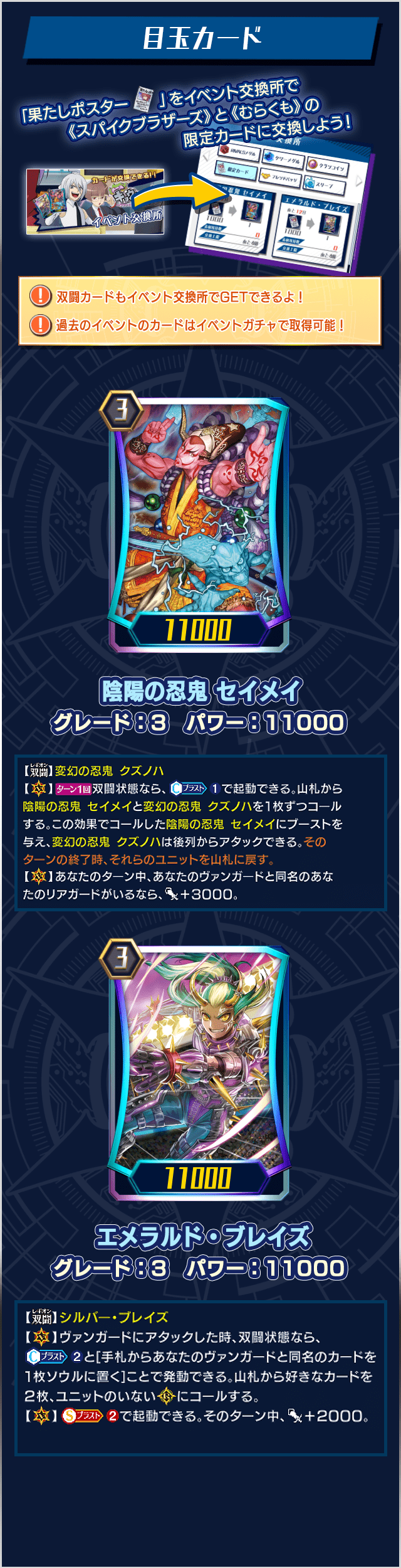 【限定カード】交換所では「エメラルド・ブレイズ」や「陰陽の忍鬼 セイメイ」、双闘カードなどのカードが交換可能!