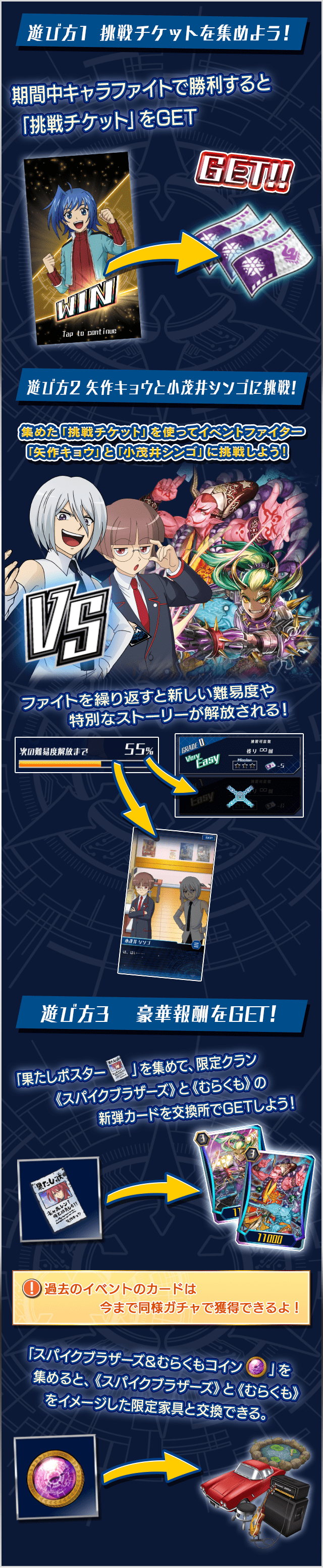 イベントページのガチャでは「果たしポスター」と引き換えに過去の《スパイクブラザーズ》と《むらくも》イベントの限定カードを獲得できます。