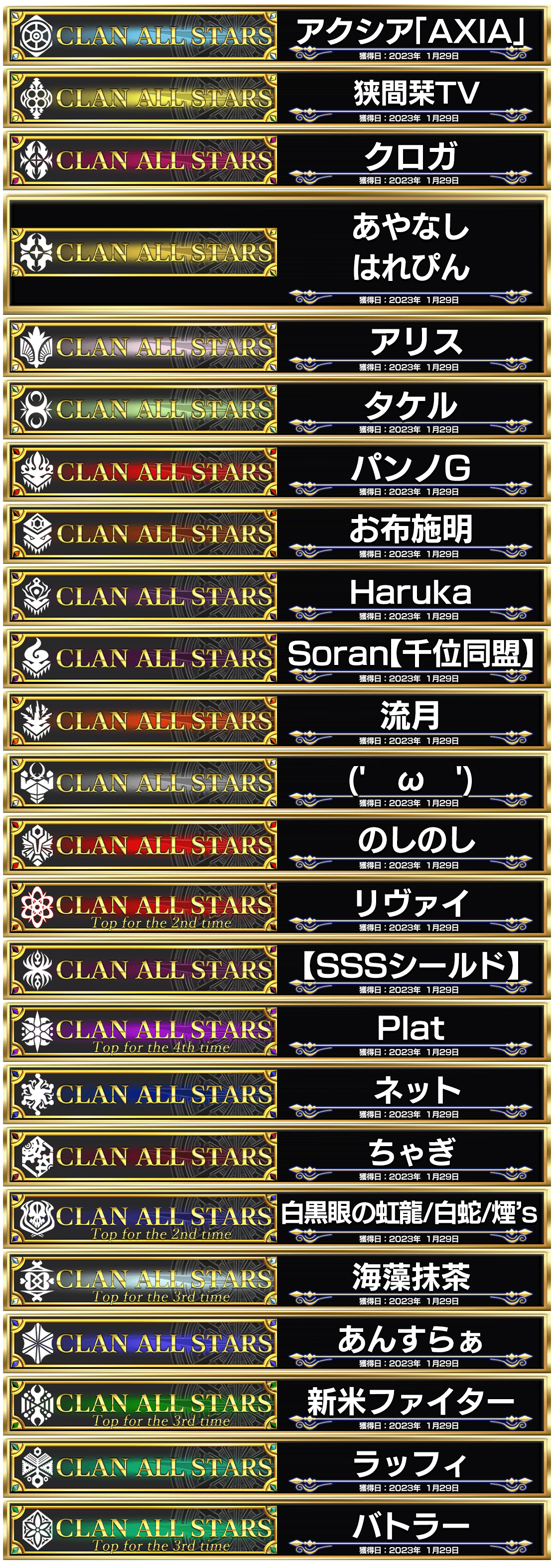 ◆3月14日 2023年称号一覧ページをオープンしました。